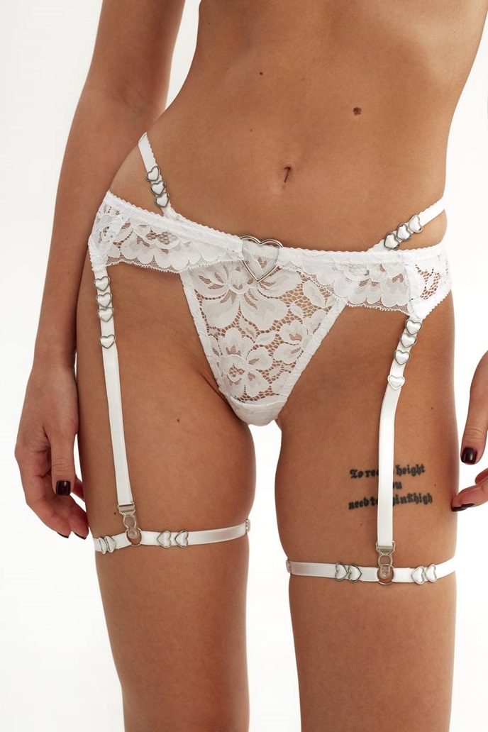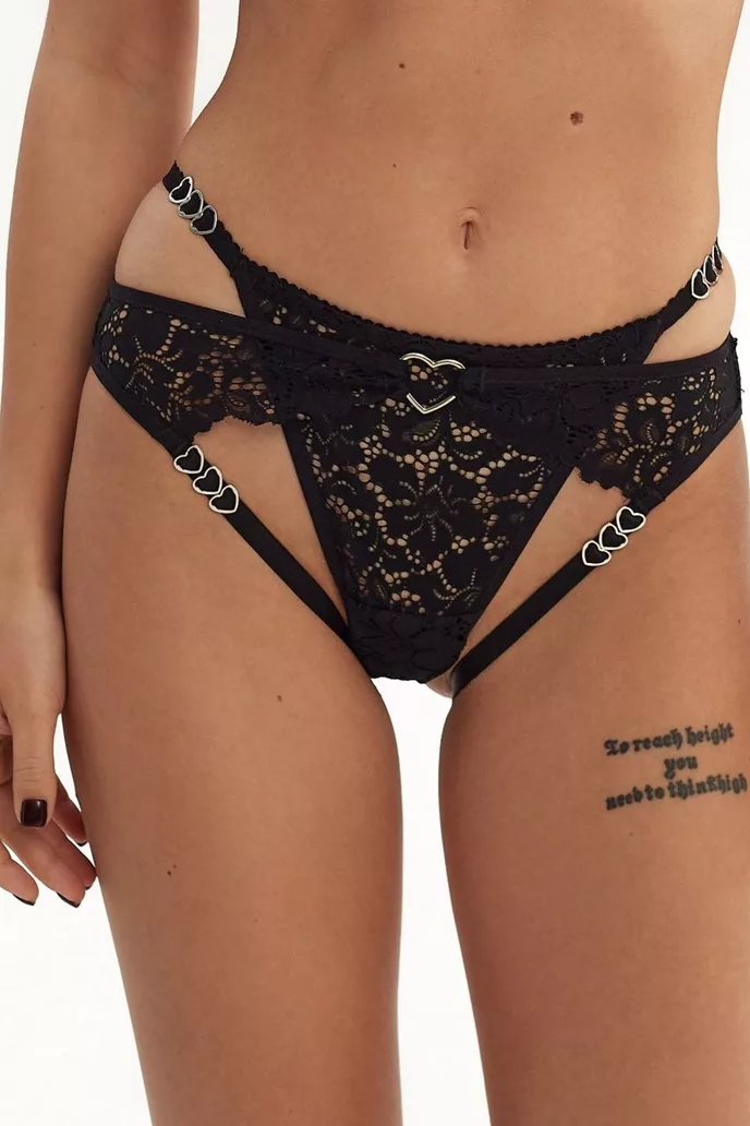 Трусики Hedonist Open з відкритим доступом та ремінцями для регулювання на сідницях, виконані із мережива. Можна носити окремо або поверх стрінгів, як зображено на фото.