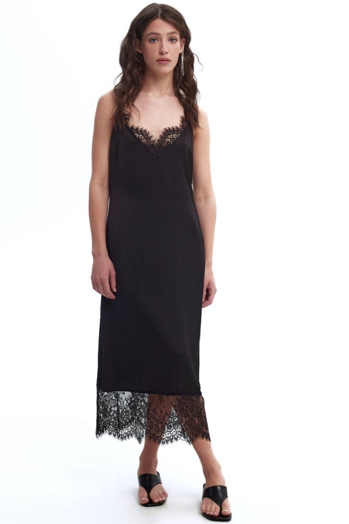 Сліпдрес Afterdark kiss виготовлений із м’якої сатинової тканини з мереживним декором.