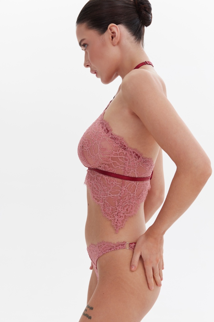 The set includes a wireless bra and brazilian panties, which together create a seductive bodysuit look.