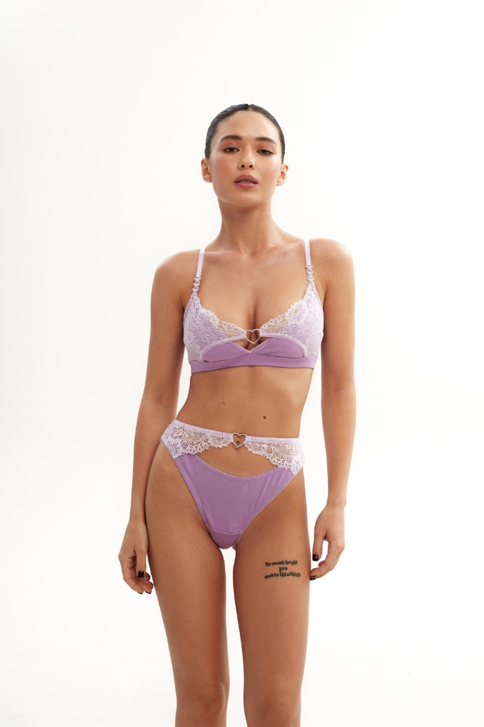 Комплект Heartbeats виконаний із делікатної бавовни та мережива, з ліфом без кісточок та трусиками бразиліана високої посадки.