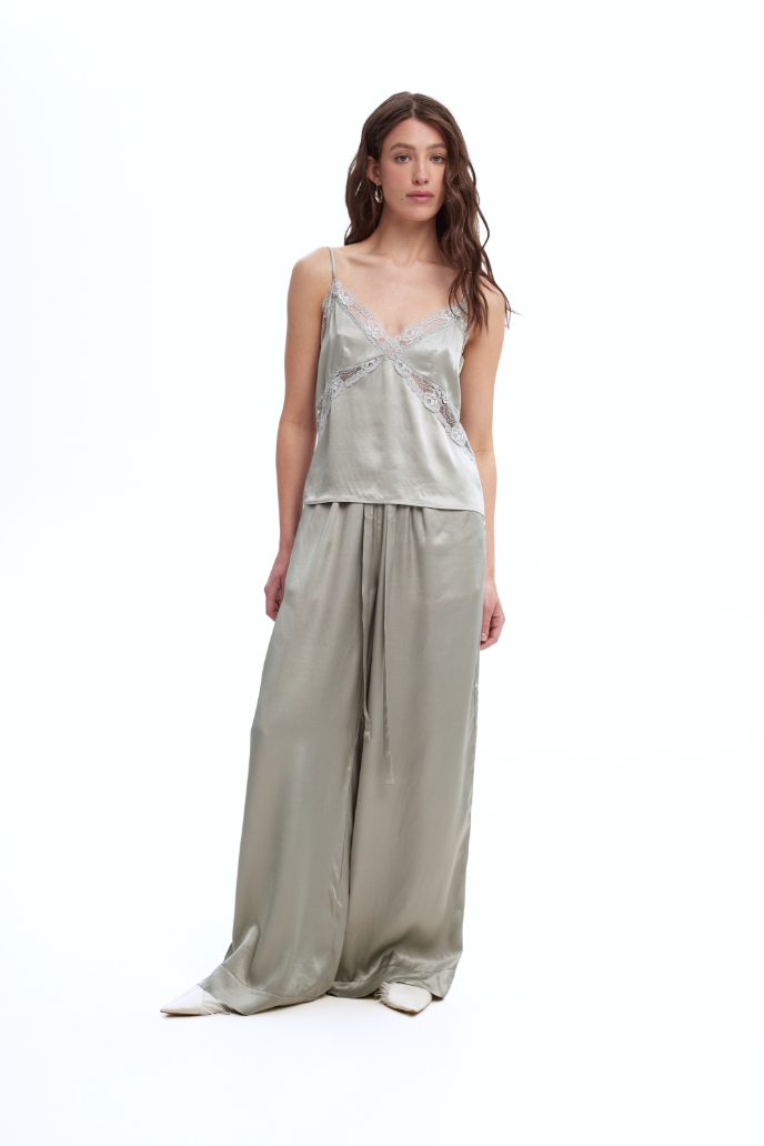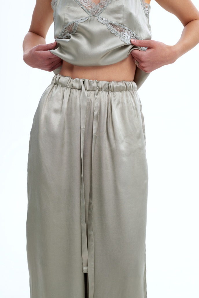 Костюм Honey, I’m home виготовлений із сатинової віскози з мереживним декором.