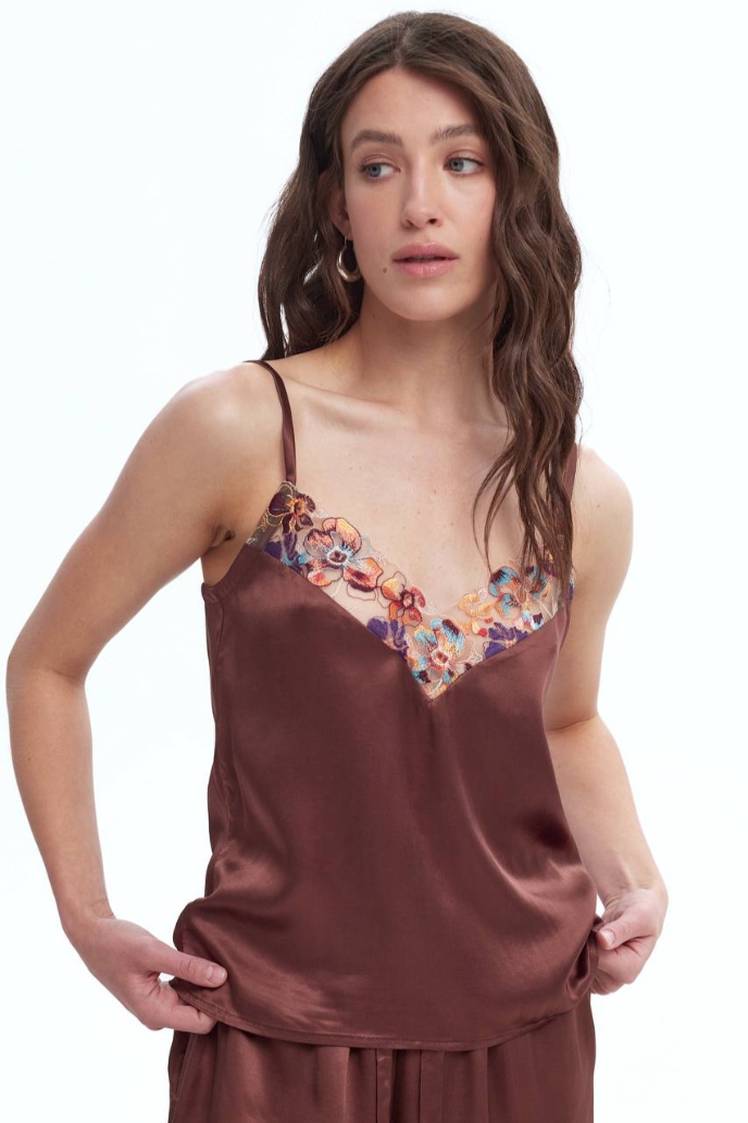 Топ на бретелях Honey, I’m home виготовлений із сатинової віскози з мереживним декором.